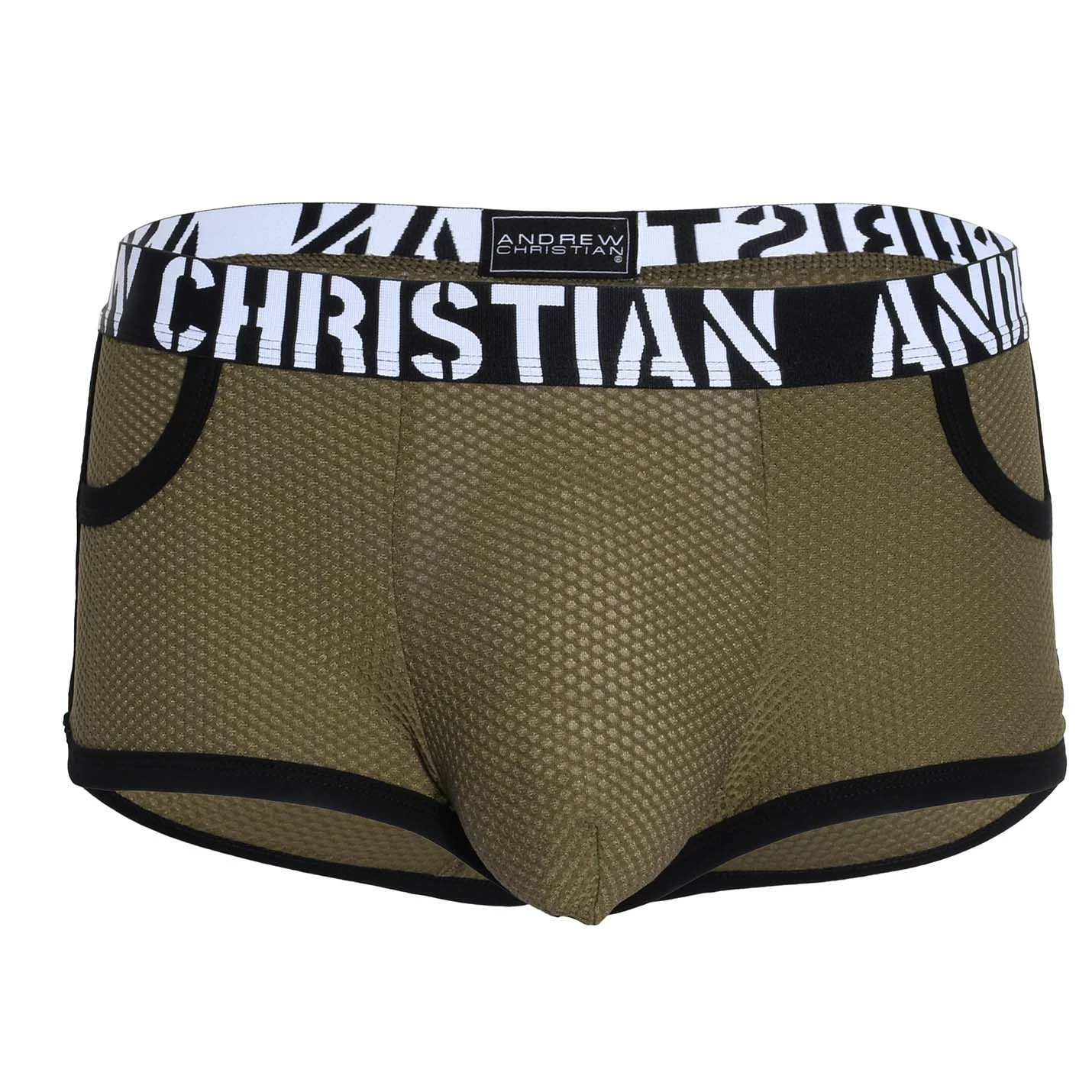 Boxer Andrew Christian Military Mesh 92596. Ceinture Ă©lastique logotĂ©e Andrew Chistian. Poche avant almost naked qui offre un excellent maintien. Tissu trĂšs confortable, vous allez adorer le porter. Poches Ă l’avant. 80% Polyamide, 20% Elasthanne.