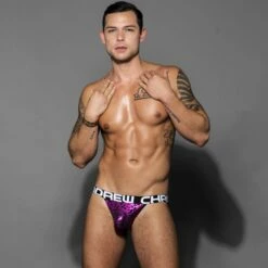Jock Strap Andrew Christian Chains of Love 92107. Jock Strap avec une chaine dorée sur le haut de la poche frontale. Ceinture élastique logotée Andrew Christian. Poche avant qui offre un excellent maintien. Tissu aspect cuir, vous allez adorer le porter. 92% Polyester, 8% Elasthanne.