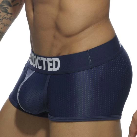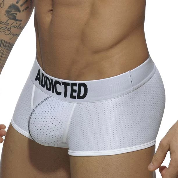 Pack de Boxers Addicted AD477P. Taille basse, sexy et doux. Respirants grâce au tissu mesh micro aéré qui favorise le séchage pour être au sec pendant votre sport préféré et même au quotidien. Ils laissent passer une transparence pour plus de sensualité. Maintien garanti à lavant comme à larrière. Une poche Push-up qui met en avant vos atouts. Ceinture élastique logotée ADDICTED devant et derrière. Excellent rapport qualité prix. 80% Polyamide, 15% Elasthanne, 5% Coton.