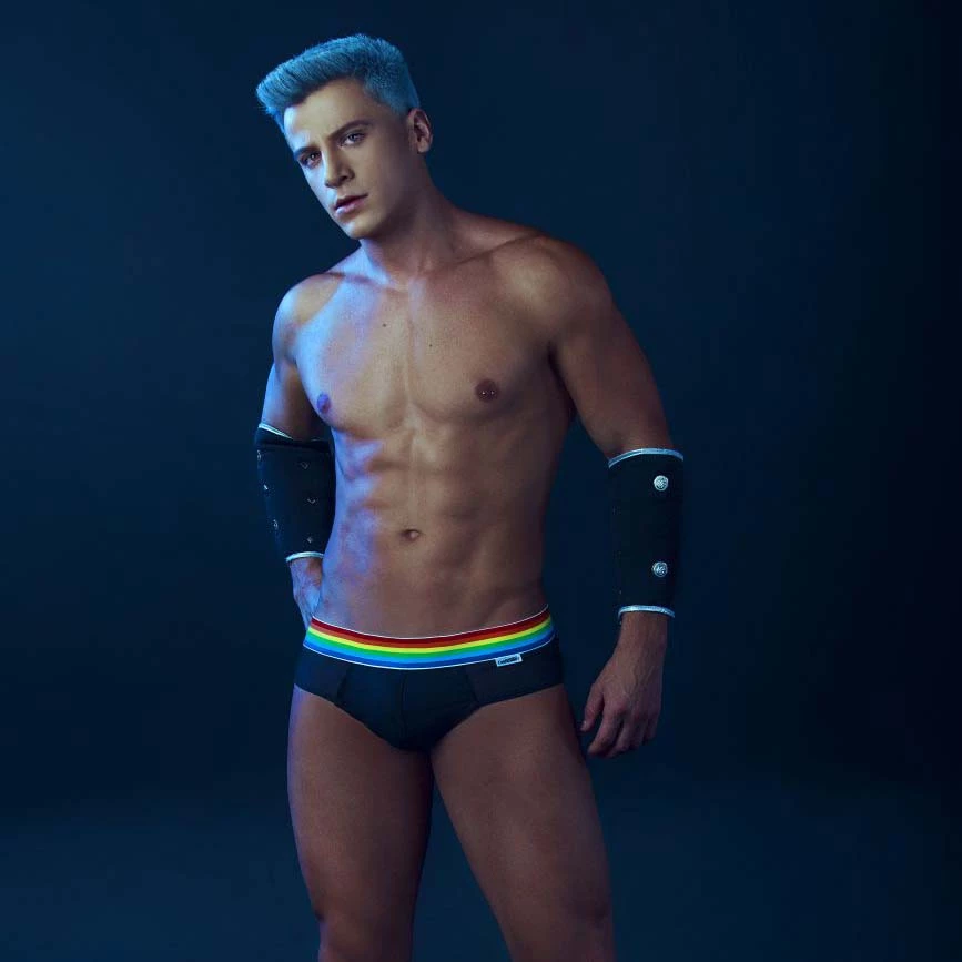 Slip Candyman 99376. Slip rainbow très sexy qui joue la carte de la sensualité avec des empiècements en tissu mesh transparent sur les côtés et sur le derrière.A porter sans modération, lors dune soirée chic et sensuelle. Ceinture élastique aux couleurs de larc-en-ciel. 94% Nylon, 6% Elasthanne.