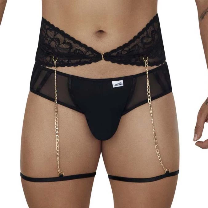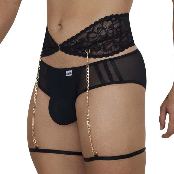 Slip Candyman 99703. Slip façon jaretelle trÚs sexy qui joue la carte de la sensualité. 86% Polyester, 14% Elasthanne.