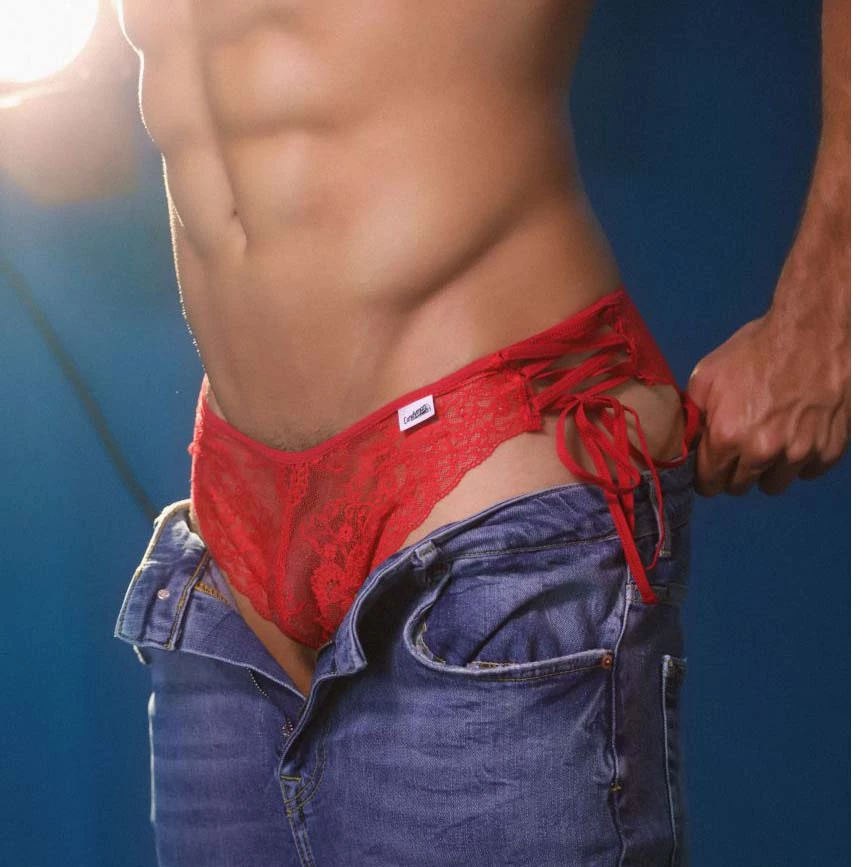 Slip Candyman Side Tie Lace 99488. Slip très sexy en dentelle. Taille basse. Vous retrouverez de chaque côtés un laçage pour un maximum de sensualité. 83% Polyamide, 17% Elasthanne.